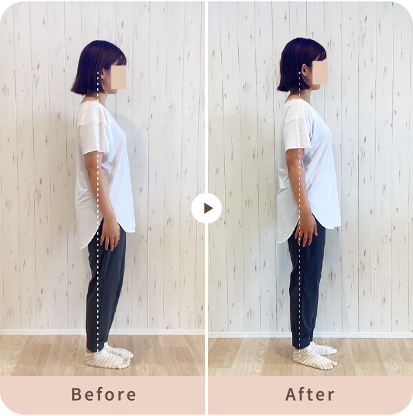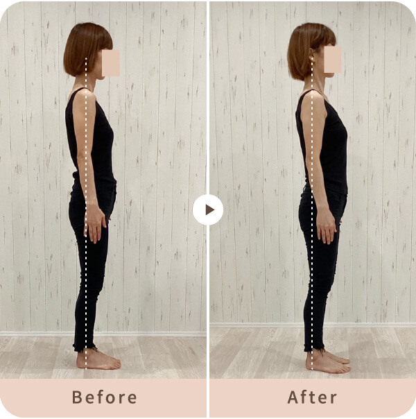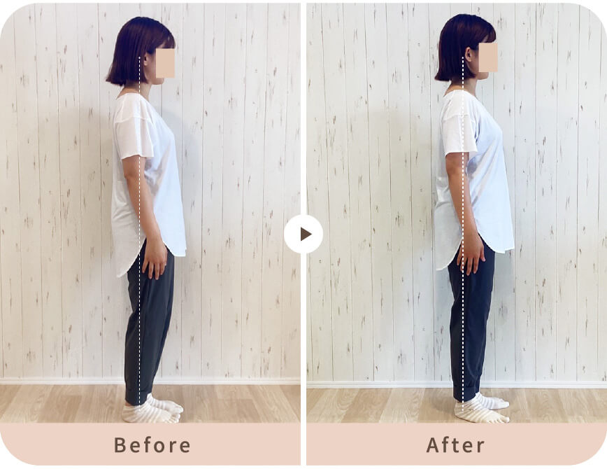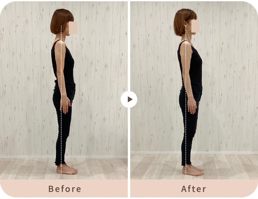 骨盤の位置、巻き肩が改善されたことでスッキリ明るく美しい見た目になりました。肩こりもよくなってきています。